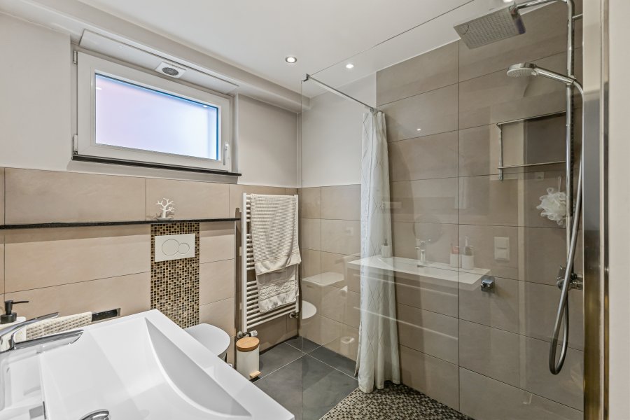 En Exclusivité, ImmoHouse vous propose ce superbe appartement 2 chambres avec garage et jardin en jouissance exclusive idéalement situé à Pétange.Au sein d'une résidence soignée de 4 unités cet appartement coup de coeur entièrement rénové de 86,87m² se compose de :